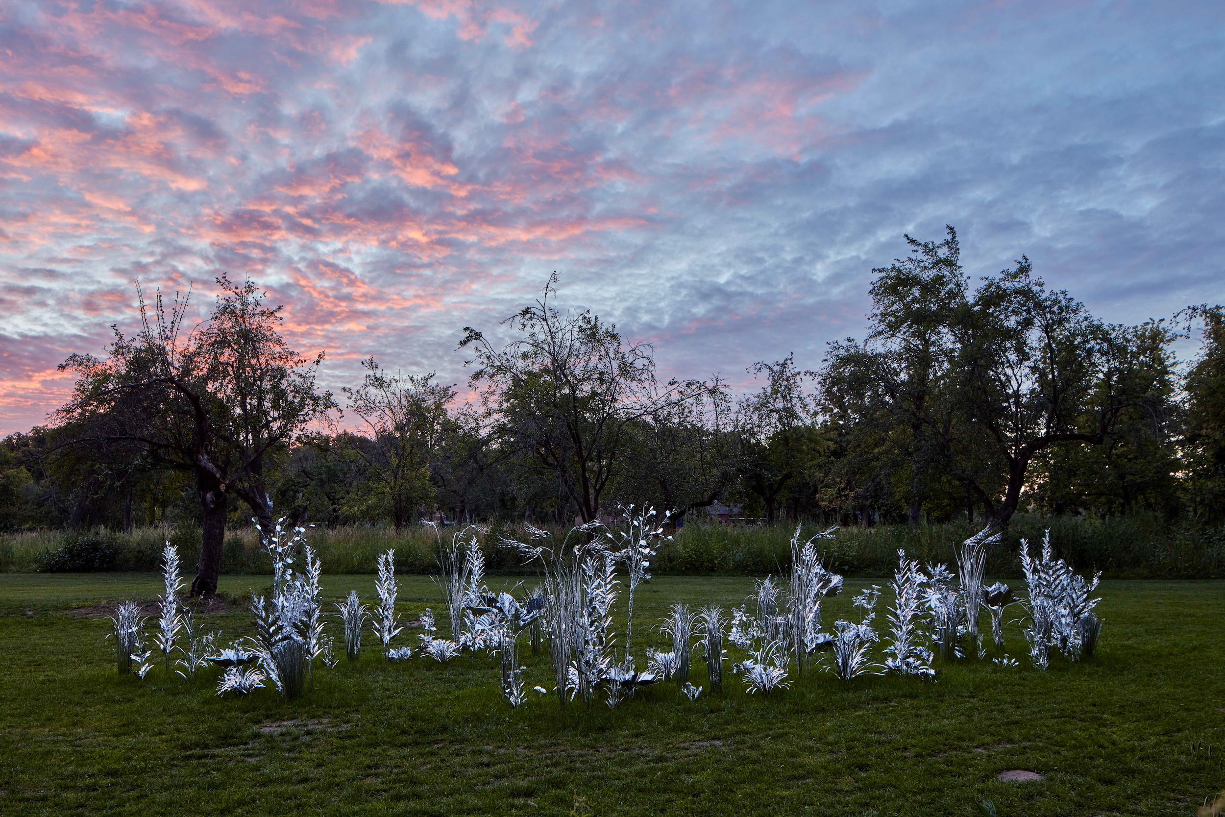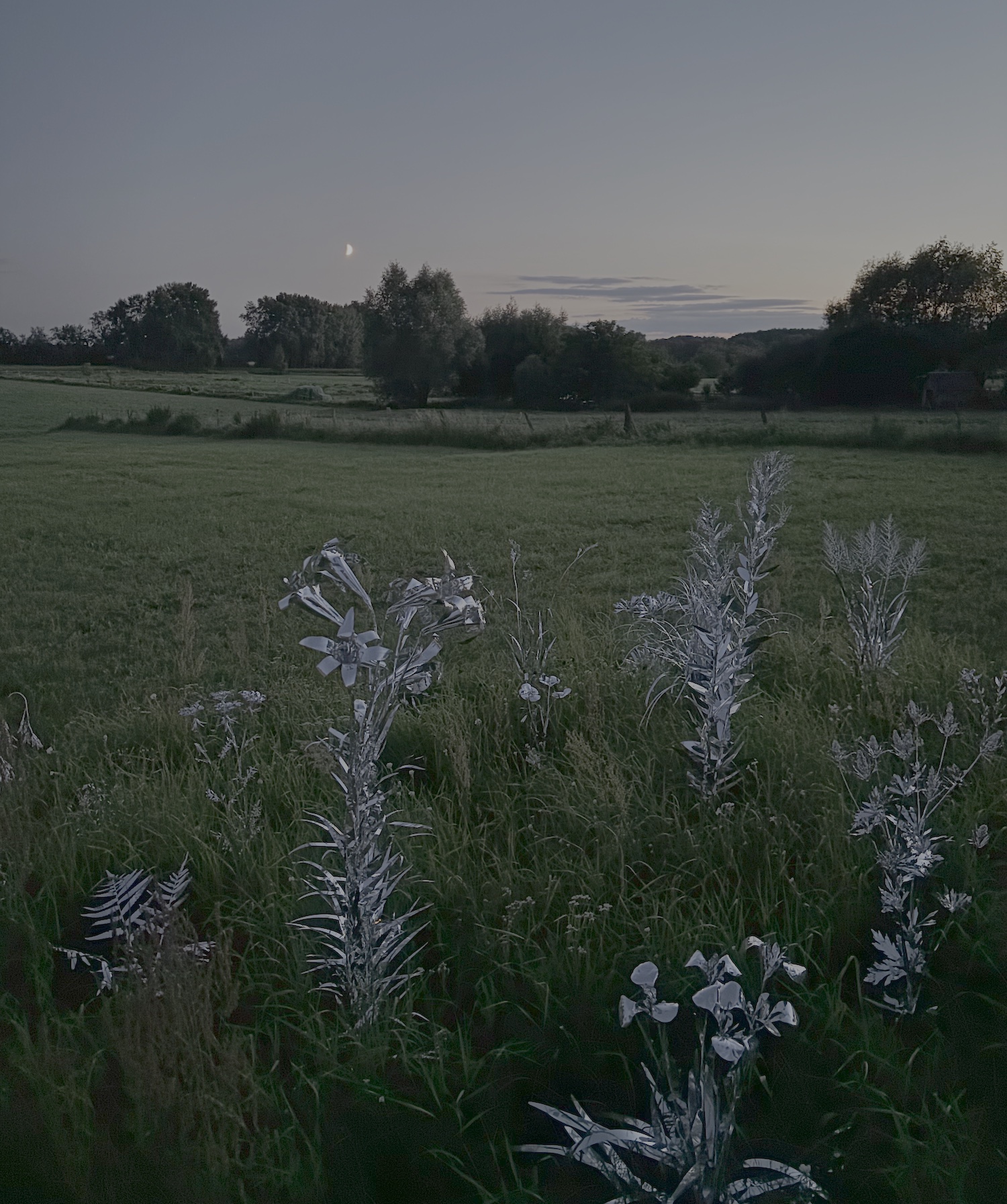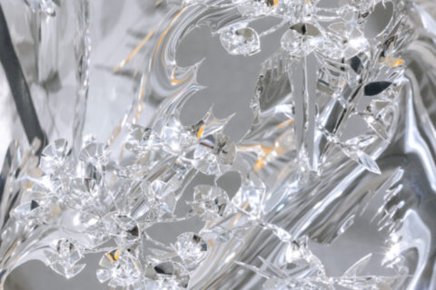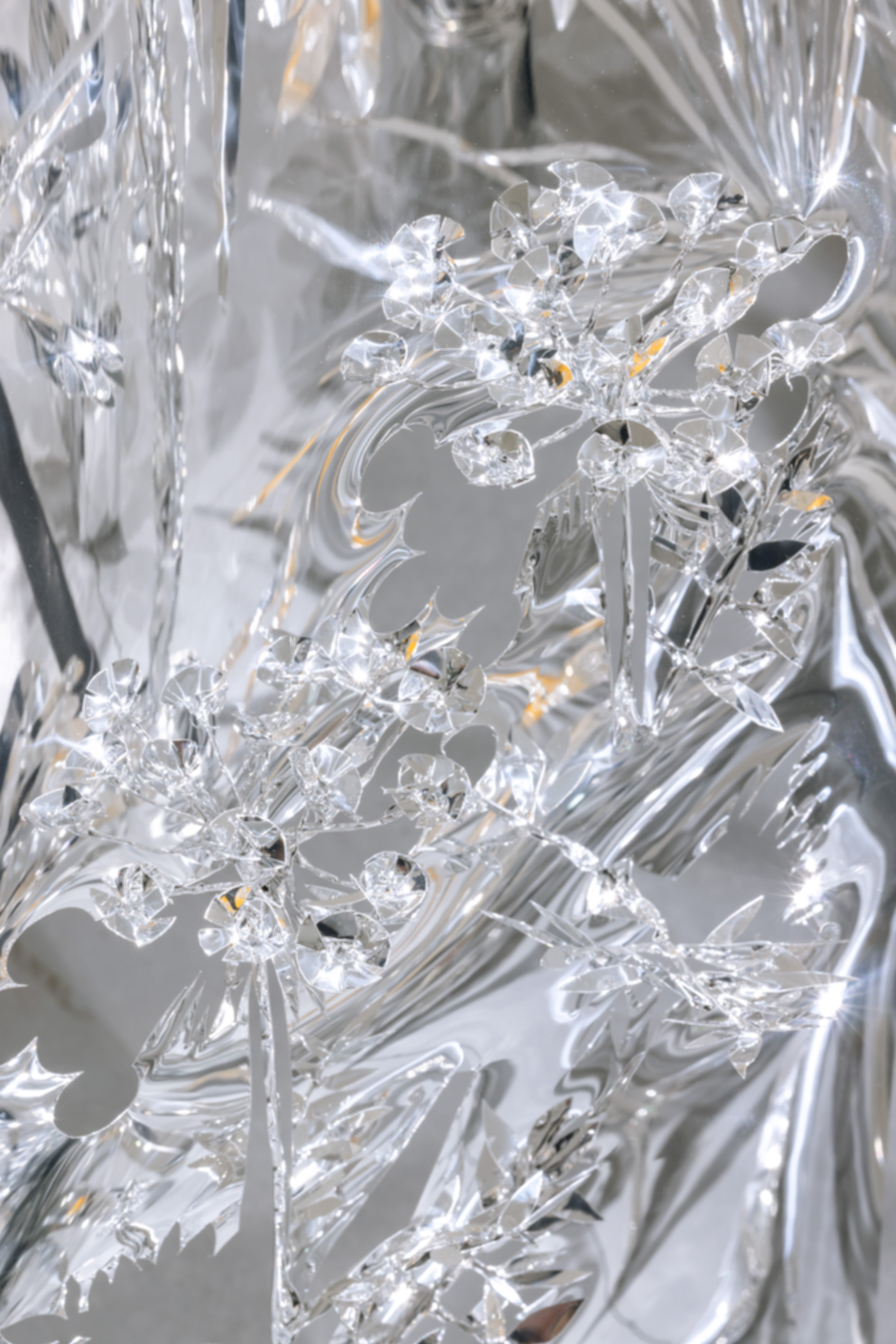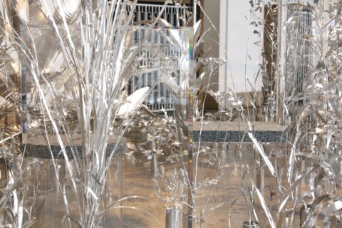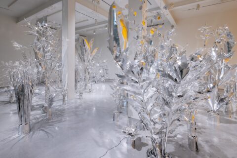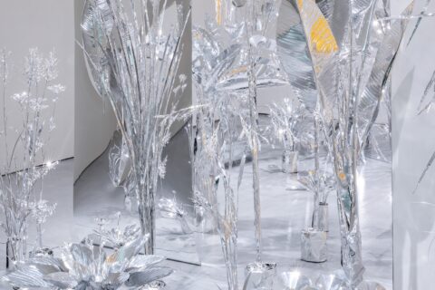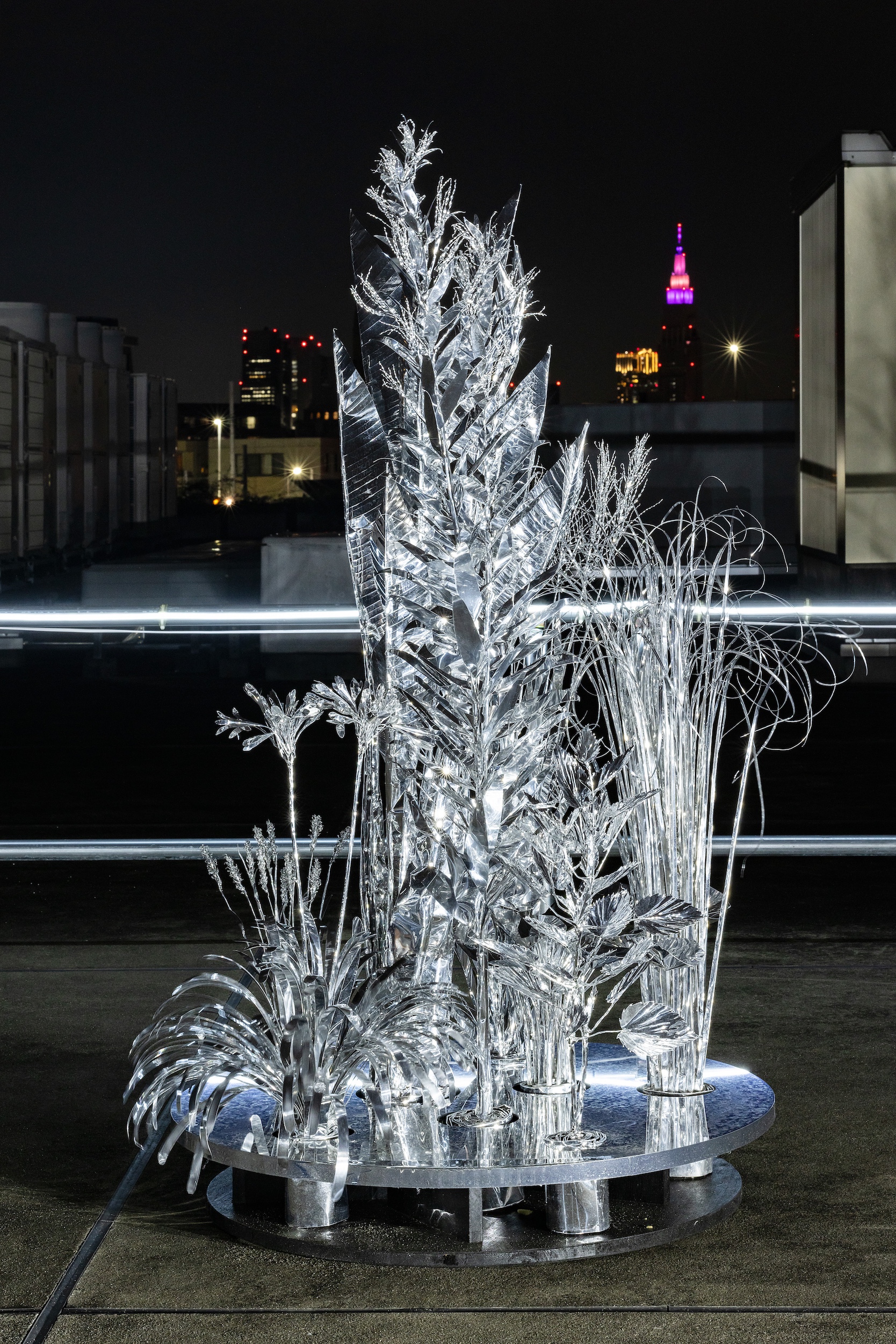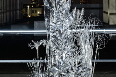 Toshihiko Mitsuya's practice is characterized by the use of aluminum foil, which he manipulates and sculpts into intricate forms. In his ongoing project “The Aluminum Garden – Structural Studies of Plants”, he cuts and folds the metal by hand into shapes that seem to breath and live like plants. The reflective surfaces capture and diffuse light, allowing the sculptures to blend into their surroundings and oscillate between reality and illusion.