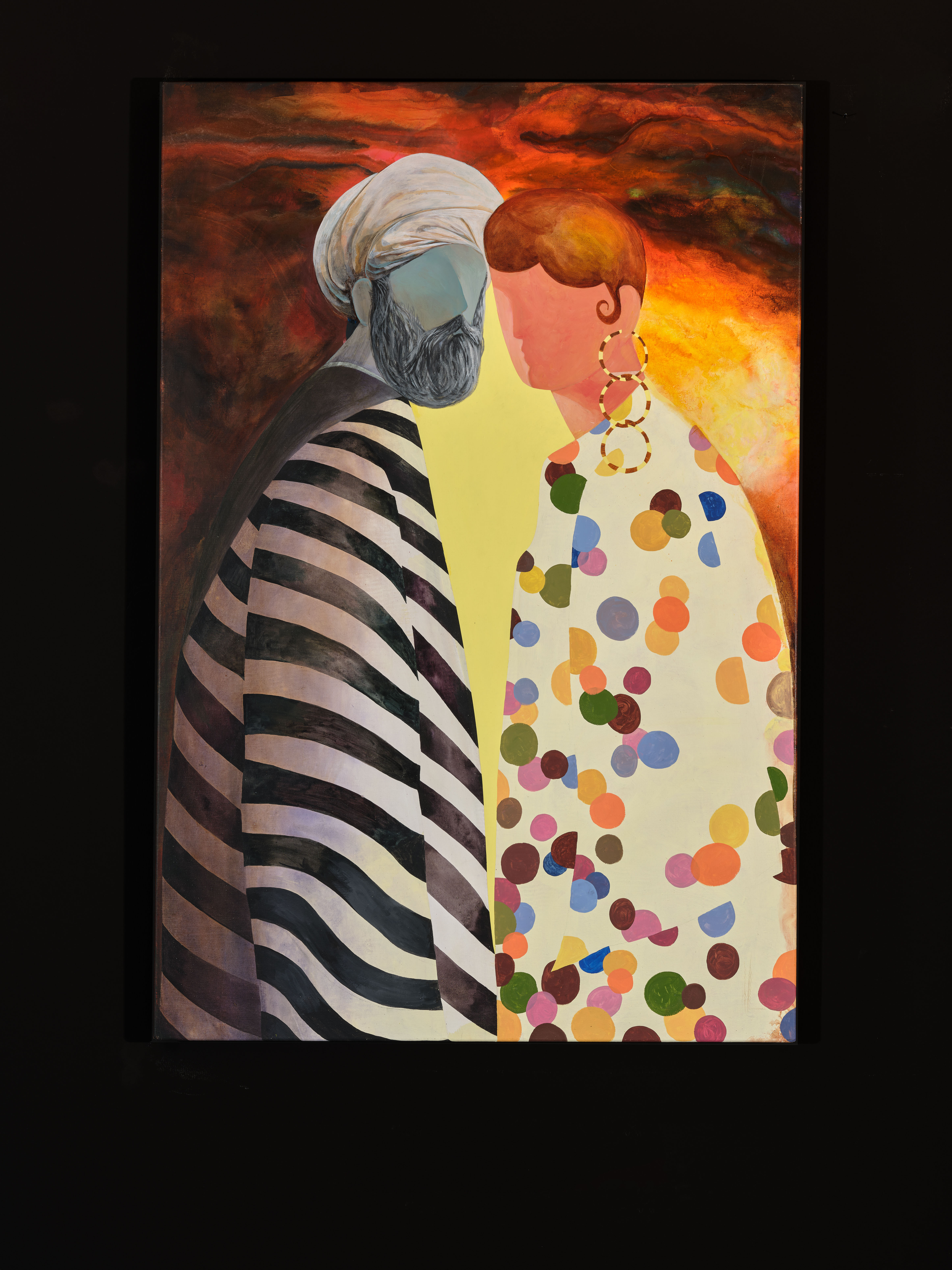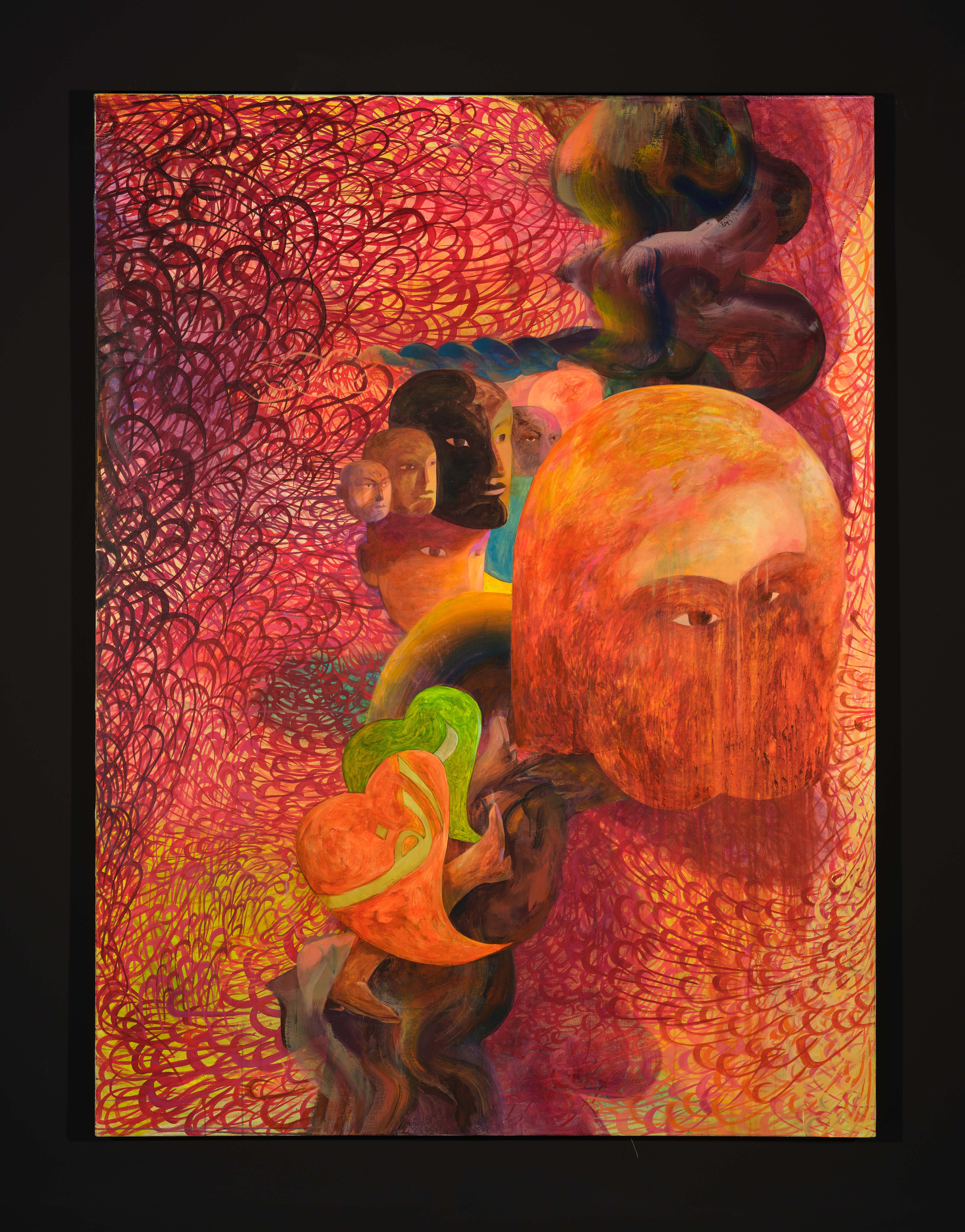 Pourea Alimirzaee’s paintings immediately draw the viewer in with their bold colors, intricate patterns, and a subtle blend of abstract and figurative forms. As an artist and storyteller, Alimirzaee observes his surroundings and invites whatever touches or inspires him to animate his work. He often begins with a basic idea but welcomes free improvisation during his paint process. This intuitive approach characterizes his paintings with an openness and vibrancy.