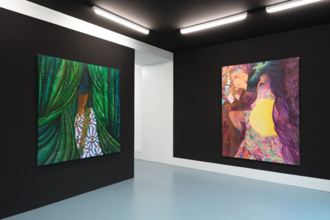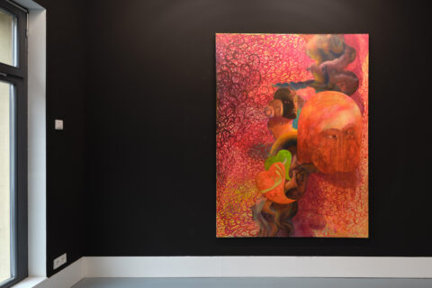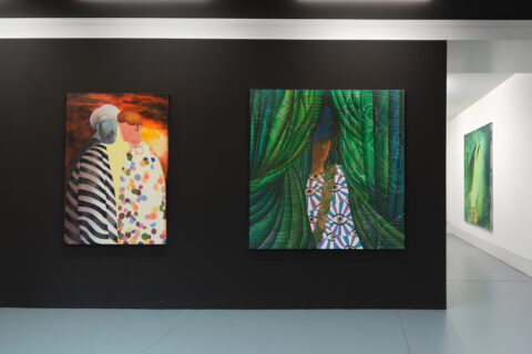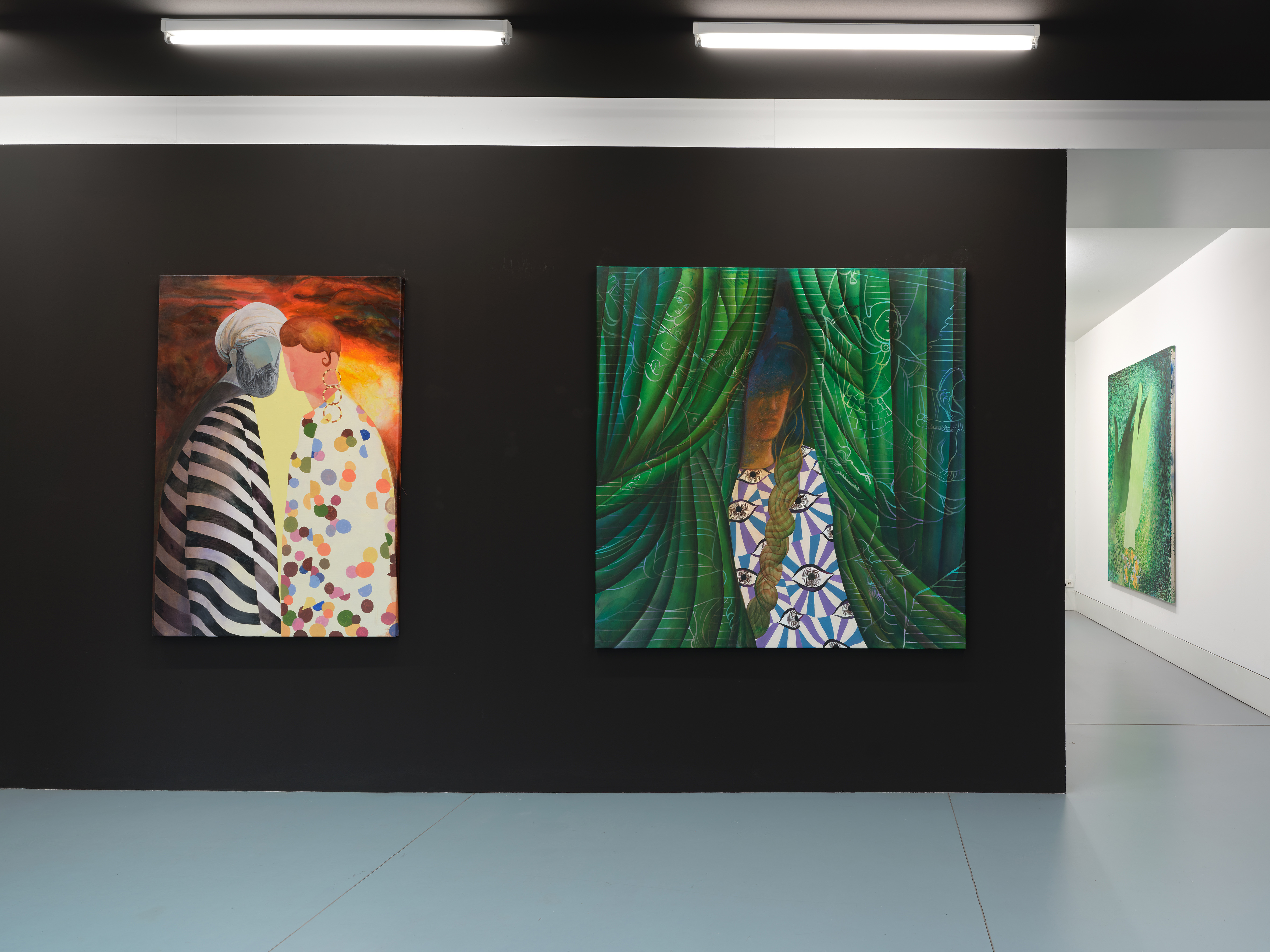 In seiner neuesten Werkserie, präsentiert in der Galerie Nagel Draxler, setzt Alimirzaee seine Auseinandersetzung mit Identität und Herkunft fort. Anfang dieses Jahres reiste er in den Iran, wo er begann, an diesen Arbeiten zu arbeiten. Seine Auseinandersetzung mit seinem kulturellen Erbe, dem lokalen Leben, der Sprache und Symbolik beeinflusste die frühen Stadien der Gemälde stark. Kurz darauf wurde seine Arbeit durch den Iran-Israel-Krieg unterbrochen. Nach seiner Rückkehr nach Wien nahm Alimirzaee die Arbeit wieder auf – nun geprägt von einem eindrucksvollen „Mix aus beiden Welten“. Diese Werke können als Brücke zwischen zwei sehr unterschiedlichen Kontexten verstanden werden, die für den Künstler jeweils eine Form von Heimat darstellen.
